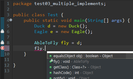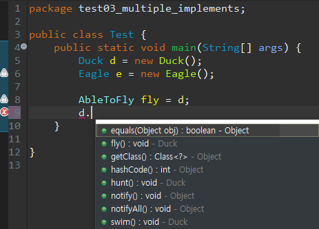DuckInterFace를 구현하라고 바꿔봤더니 오류떴어
