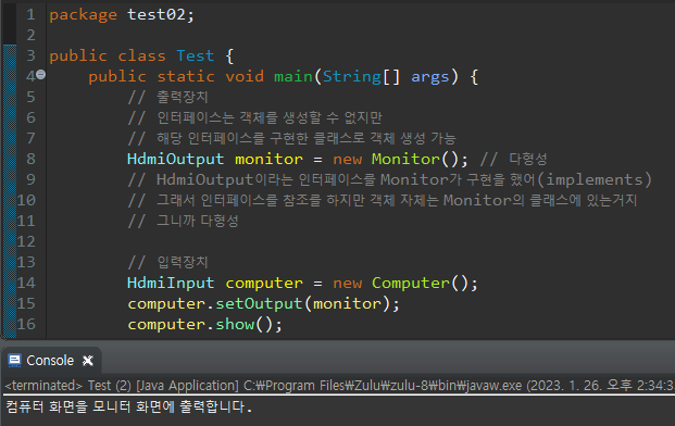 Computer는 HdmiInput이라는 인터페이스를 구현했어 (implements)