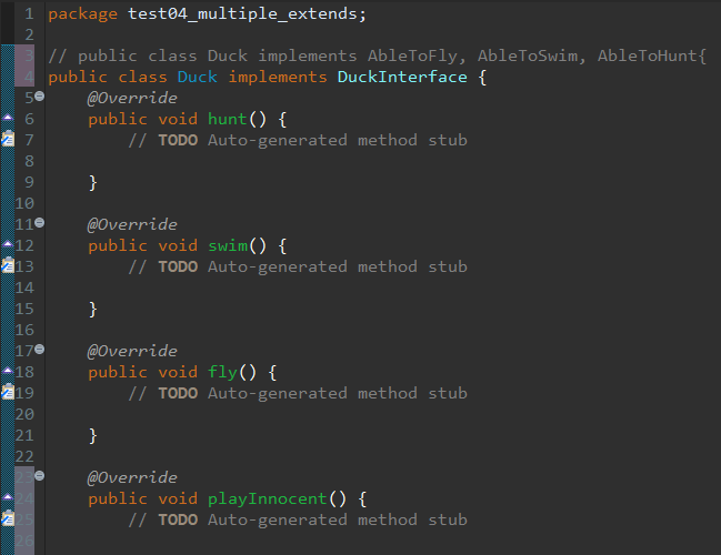 이것도 오버라이드를 해줘야 Duck이 인터페이스를 제대로 구현할 수 있엉